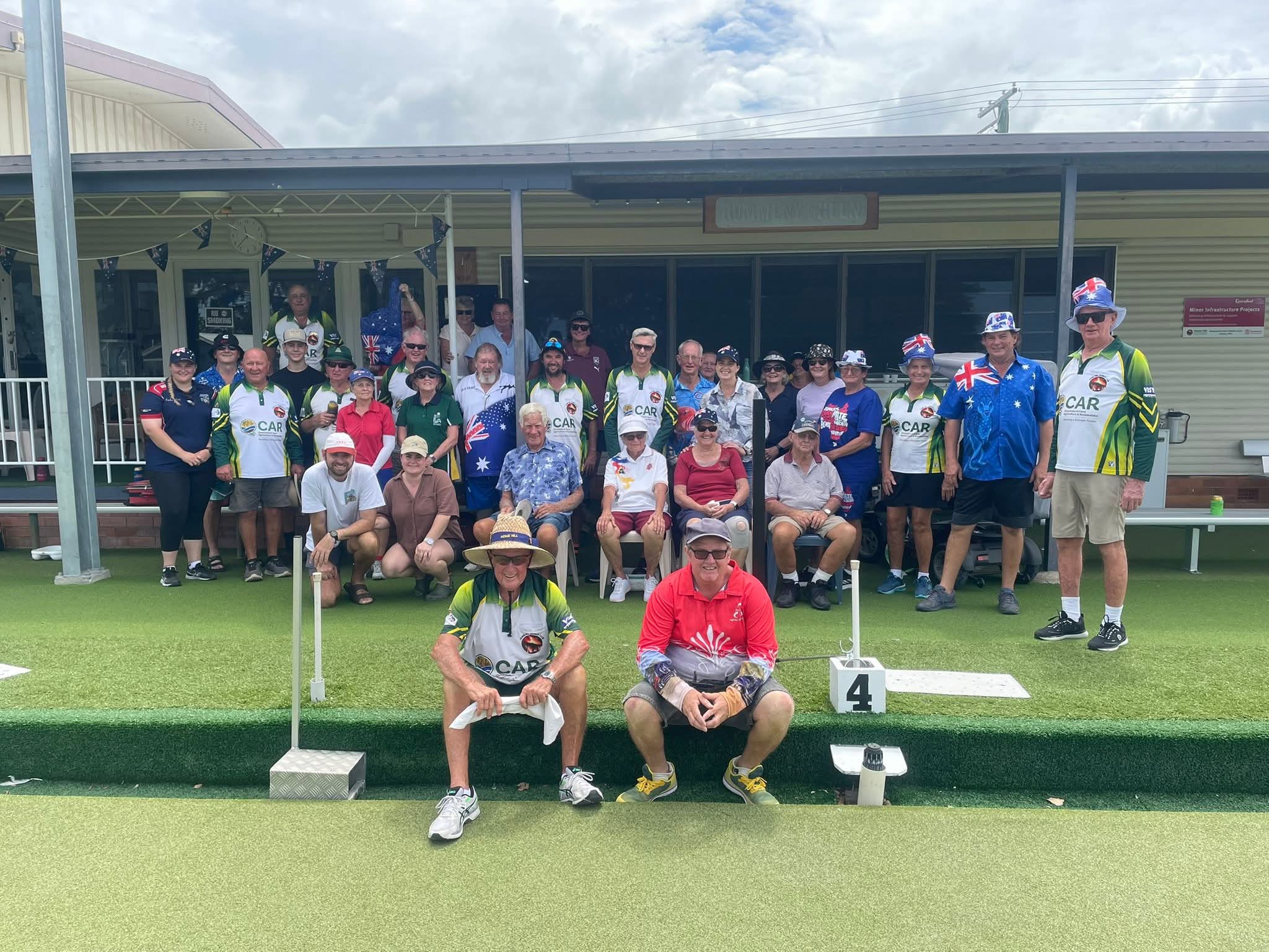 On Saturday 24 January, the club held an Australia Day BBQ for family and friends, as seen in the second photo. An Aussie sausage sizzle kicked off proceedings, along with an 80th birthday celebration — congratulations to Elaine Young. A game of spider bowls was arranged, with some first-timers and new members taking part, and Scott Taylor winning the event by drawing nearest to the kitty. A great day was had by all who attended.