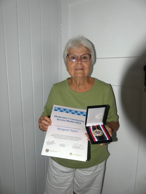 Margaret Taylor, recipient of the Moderator's Community Service Medal 2023. Photo credit: Miah Lampard