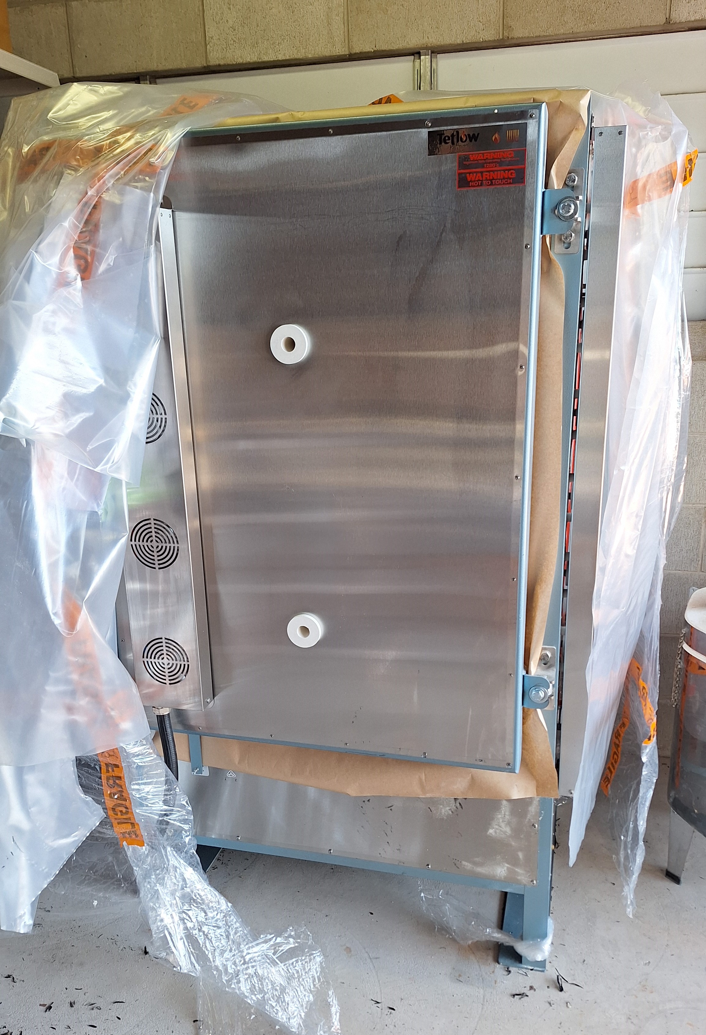 The kiln is finally positioned in the clubhouse.