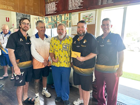 Winners, Thuringowa Bowls Club: Allan Hay, Kerry Martin, Sponsor Jamie Woods, Peter Martin, Jimmy Seymour.