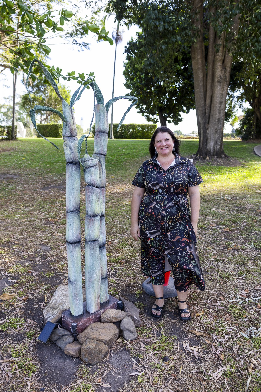 Home Hill came alive on Sunday, 28 September, as the 2025 Canefields Ephemera launched in style at Mann Lloyd Gardens. Six striking installations by local artists transformed the gardens into a vibrant celebration of creativity, community, and regional identity. Among the showcased works were Uli Liessmann’s Dancing in the Park, Rhesa Menkens’ Palmacrame and Tribute to My Father, Allan Petersen’s Antler Gully, Rebekah Oakes’ Frederick the Frog, and Lisa Gianni’s Heart of the Burdekin.
