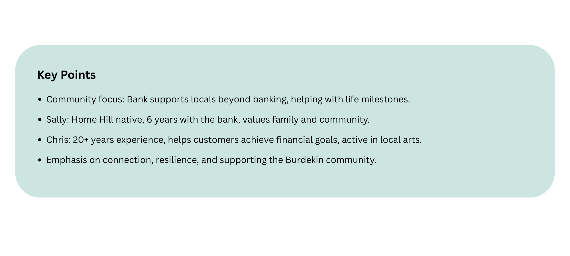 Alongside Sally is Chris, who brings two decades of experience to her role as a Personal Banker, having started with the Community Bank in 2005.