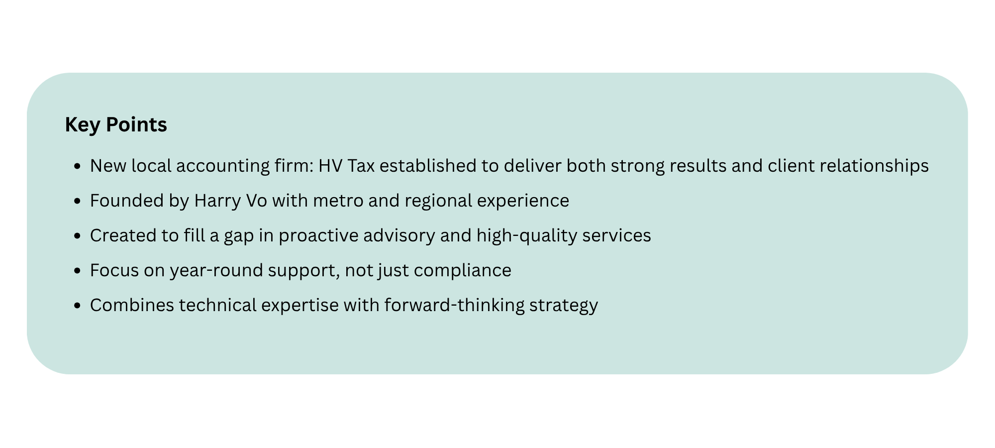 “What sets HV Tax apart is the combination of strong technical expertise and a forward-thinking approach,” he said, adding that while many accountants focus on historical reporting, his approach balances compliance with strategic planning.