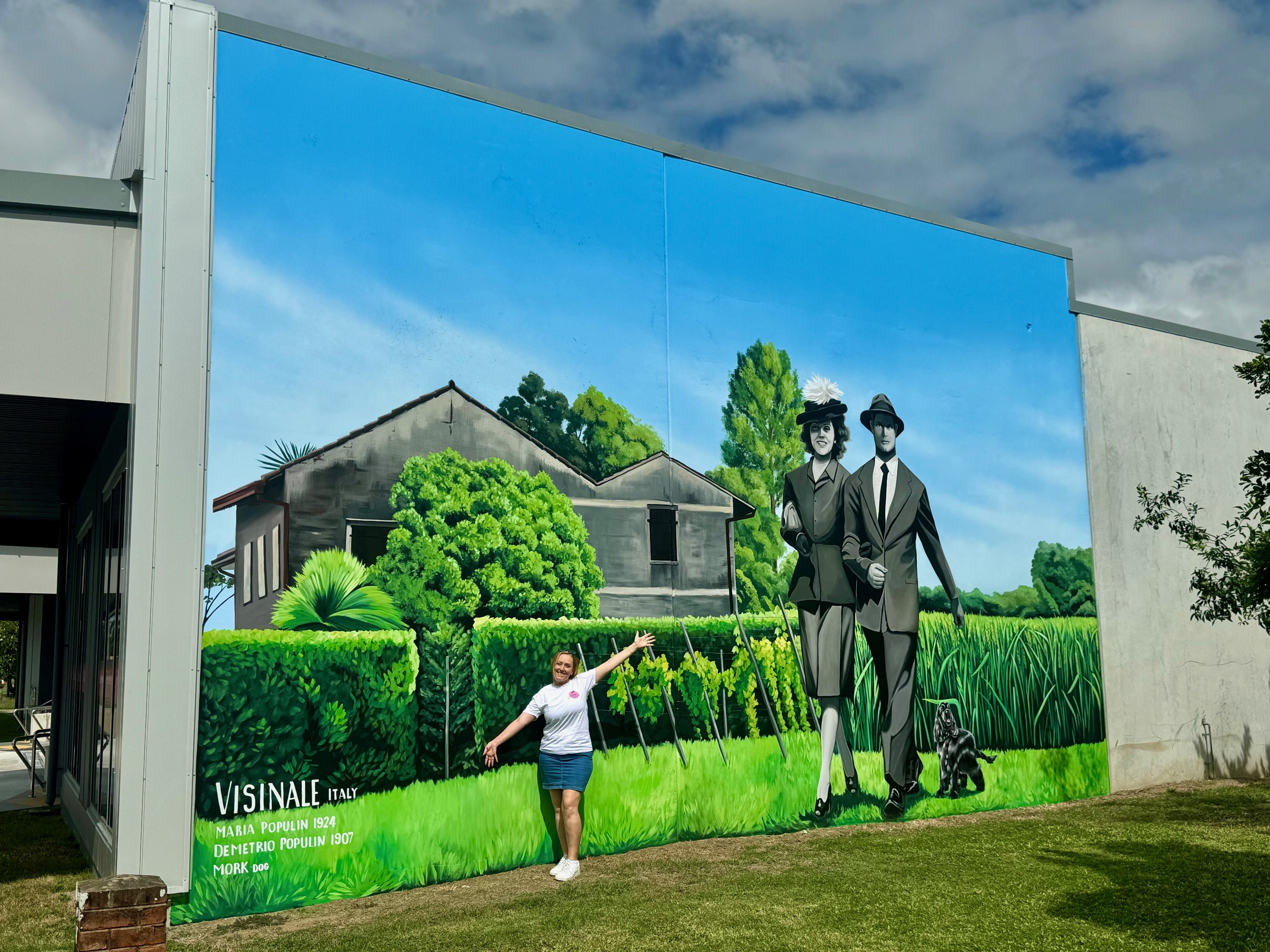 Lavinia’s paintbrushes have coloured the region multiple times in recent years, with each piece created to celebrate the people, stories and identity of the area. One of her most celebrated projects in the shire was commissioned by George Populin as a tribute to his parents, Maria and Demetrio Populin, and can be seen on Beach Road in Ayr.