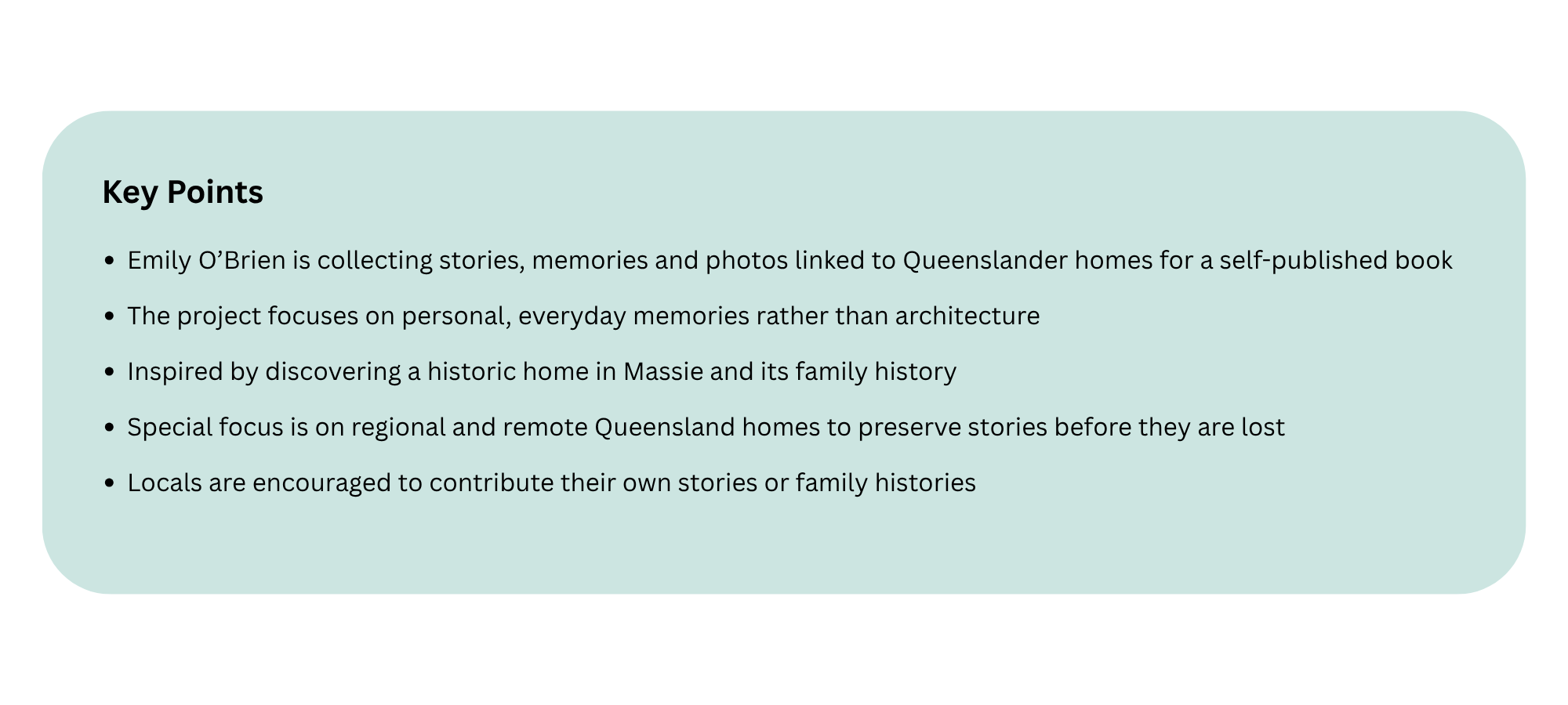 If your walls could talk, what would they say? Emily O’Brien recently took to social media asking residents to answer that very question, inviting locals to share their memories, photographs and personal histories tied to an iconic Queenslander home. Emily hopes to document the lived experiences inside these homes through a self-published book, focusing on the everyday moments that often go unrecorded.