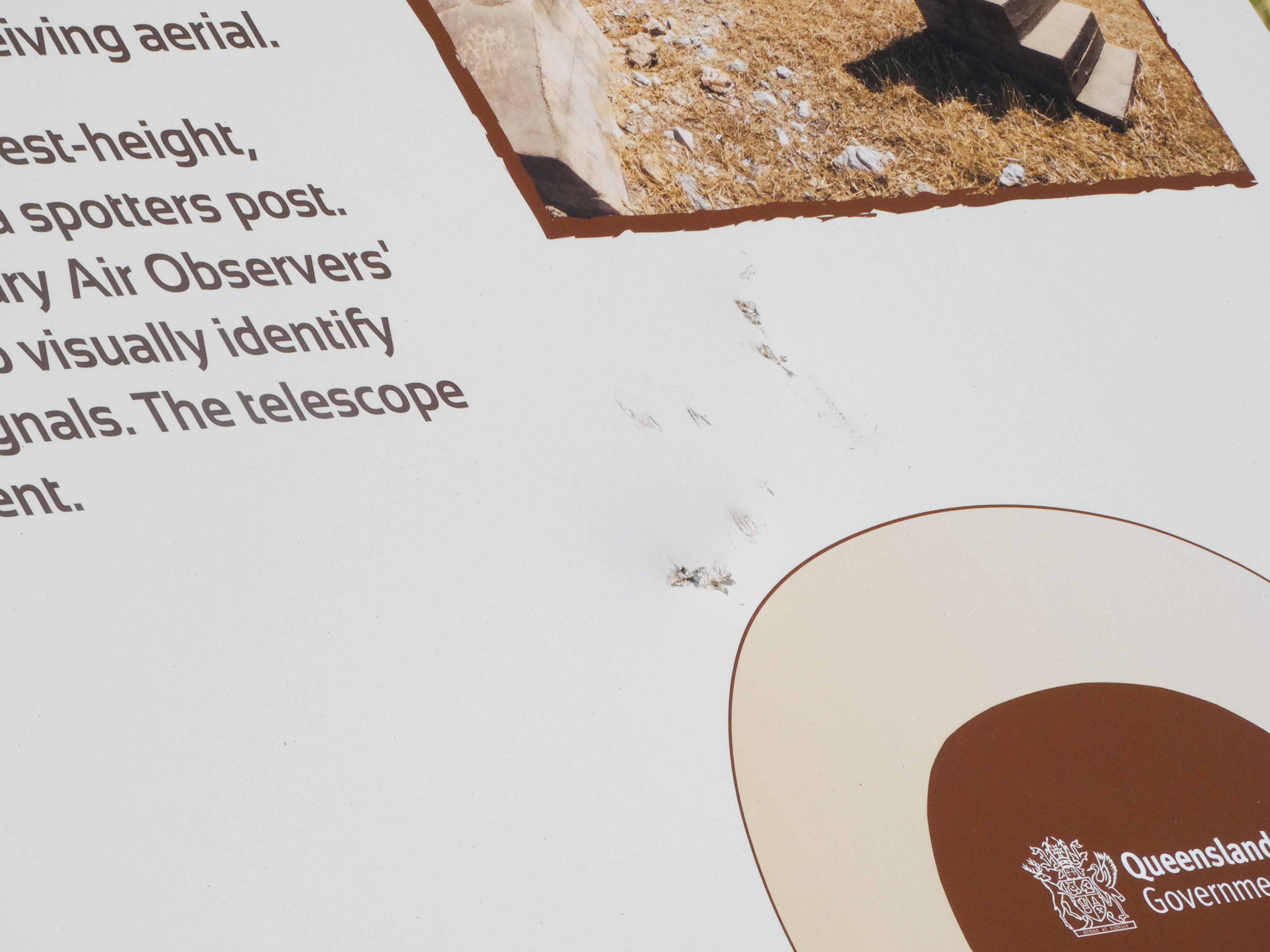 The damage was reported on 9 April, with two of six newly erected interpretive signs—installed late last month to recognise the site’s wartime significance—left dented.