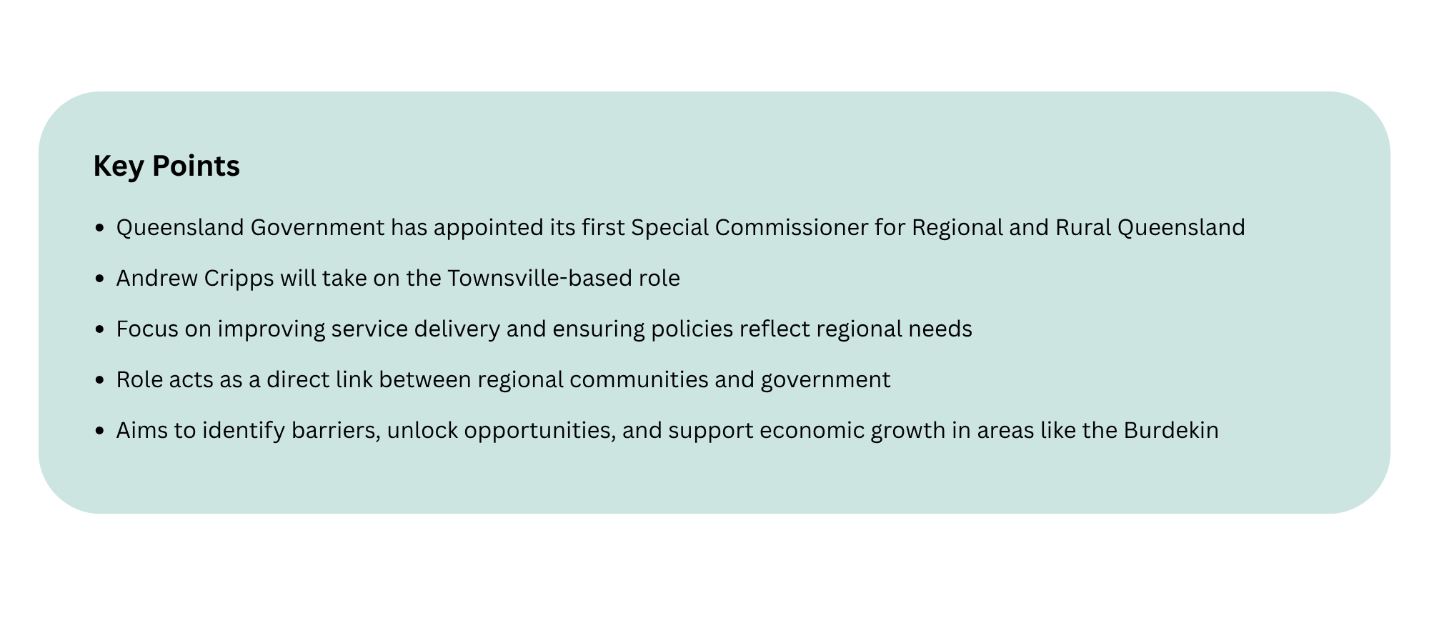 For many years, access between Ayr and Home Hill during flood events has been a significant concern for our community. I am pleased to share that the Department of Transport and Main Roads has commenced a geotechnical investigation of State-controlled infrastructure on the Bruce Highway at Plantation Creek. This important work will inform future connectivity planning, not only between Ayr and Home Hill, but for North and Far North Queensland and western regions. These investigations are funded through the Commonwealth–State Disaster Recovery Funding Arrangements and is proposed to be constructed after the 2027 wet season. As we approach Anzac Day, the Burdekin is preparing for ceremonies across the Shire to pause, remember and honour those who have served our nation. In light of world events unfolding in 2026, this year’s commemoration carries even greater significance. It is a reminder of how fragile peace can be, how vital unity is, and why it is so important to honour those whose service has allowed us to enjoy the freedoms we often take for granted. To reduce impacts on park amenities, and in preparation for Anzac Day commemorations in Home Hill, Council will be undertaking flyingfox dispersal activities at Arch Dunn Memorial Park to ensure ceremonies can proceed respectfully and safely for all attendees. Work is also progressing on the upgrade of memorial plaques and posts along Pioneer Avenue in Home Hill, with the project now reaching the halfway mark. All 50 memorial plaques have been carefully restored to their original condition and are being relocated back to their original sites on new recycled plastic posts, ensuring these tributes are preserved for future generations. Following recent weather events, both Council crews and contractors have recommenced unsealed road grading works under the Disaster Relief Funding Arrangements, jointly subsidised by the Federal and State Governments. Crews are currently working on Brewster Road and Jerona Road in the Barratta area, as well as Pyott Road in Airdmillan. Council crews have also commenced footpath renewal works at the corner of Parker Street and Wilmington Street in Ayr, adjacent to the Seventh-day Adventist Church. These works involve the removal and replacement of damaged footpaths that have been assessed as requiring renewal due to their condition, improving safety and accessibility for pedestrians. Should you wish to reach out, don’t hesitate to contact me directly by phone at 0447 150 582, or feel free to send an email to mayor@burdekin.qld.gov.au.